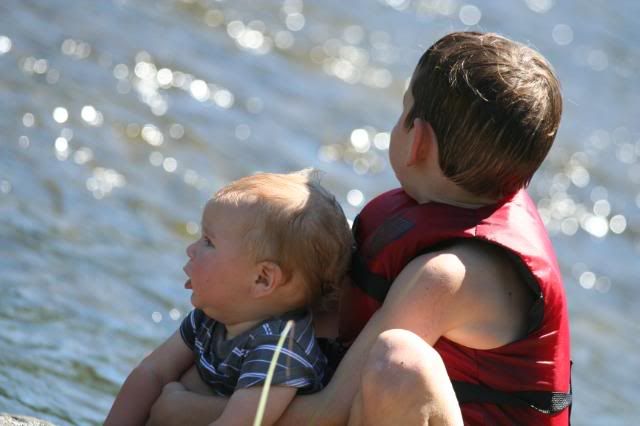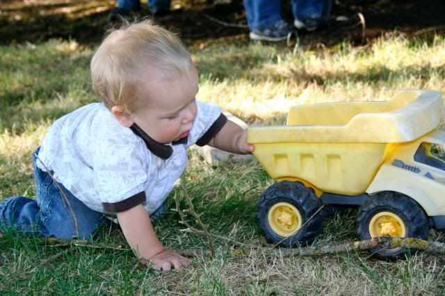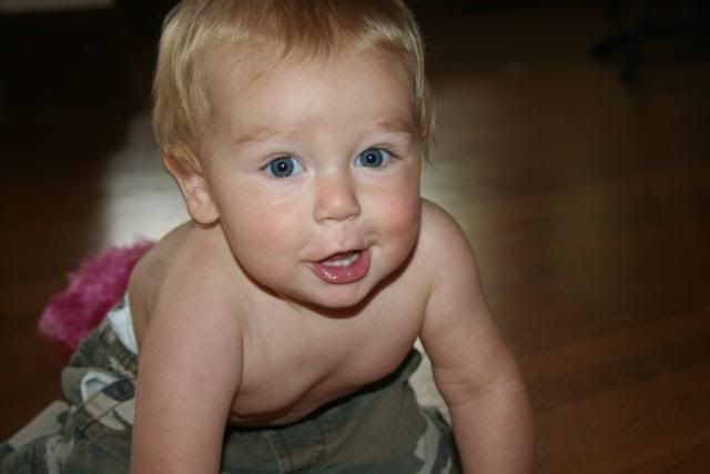 Gabriel is almost a year old. My how time flies. I love to watch him play. He loves anything that has wheels on it. He is 100% boy. He still gets most places by crawling. He will walk around furniture if he can hold on pretty well, but not really intrested on making a go on his own. He loves the water too, just like all our other children. And he adores his big sister Laura.
