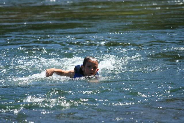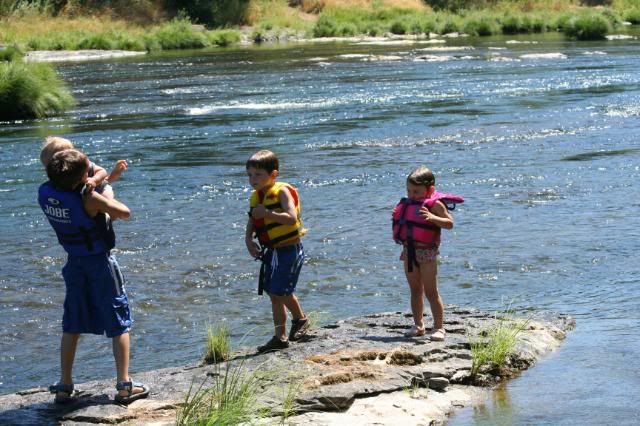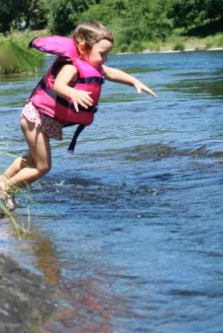 We have been spending our hot afternoons down by the river. There is 800 ft of river that belong to the property we are renting. This part of the river is great to swim in for the children. It is very clean, not to cold, and not very deep until you get way out in the middle. It’s a little bit of a walk to get there. Which is fine with me. I really see this as ideal. We all love water. Playing in it, swimming in it, you name it. But I stress when it is too close to our house. The older four children are excellent swimmers, but the little ones worry me if they were to be unsupervised around water. So with this river, we can walk there to swim, but it’s far enough away that little ones can’t “wander away” to explore it. So I am very pleased with the situation at present. And so are the children.