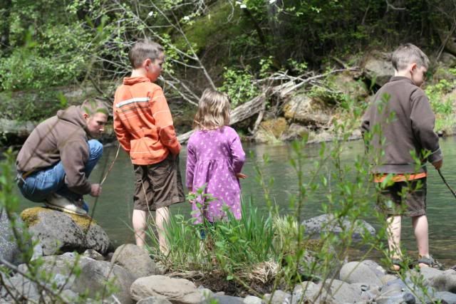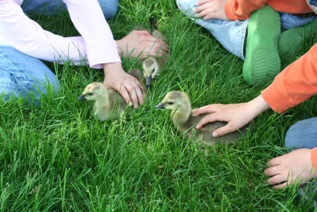 We have had more sunny days than rainy days lately, so more time to play outside. The geese have three goslings, and the children have managed to capture all three little babies without any major attacks from the momma and daddy goose. They play with them for hours, until I remind them that they are still babies and need their mom and dad to take care of them. I looked out the kitchen window a few days ago, to see a plastic storage tub filled with water in the yard…with the lid on. I had this sneaking suspicion that I should go and investigate, so I did. I opened the tub, and there was a little gosling, swimming in the water. They had even put a pile of rocks in there so the baby could sit and rest out of the water. BUT…the lid was on and the sun was shining. So I called the children and explained that it could get very hot in the tub, even if it was not hot outside, and then the baby goose would die. So they let him go for the rest of the day. Until the next morning when they captured the three babies again. Then yesterday afternoon, on the goose hunt to get the babies, the parents took off to the river. Leaving behind the “peaceful” pond that they had hoped to raise their little family. The children are sure the geese are gone forever, because “Mom- the river is fast and once they get in the river they will be swept away and we will never see them again”. I don’t blame them.