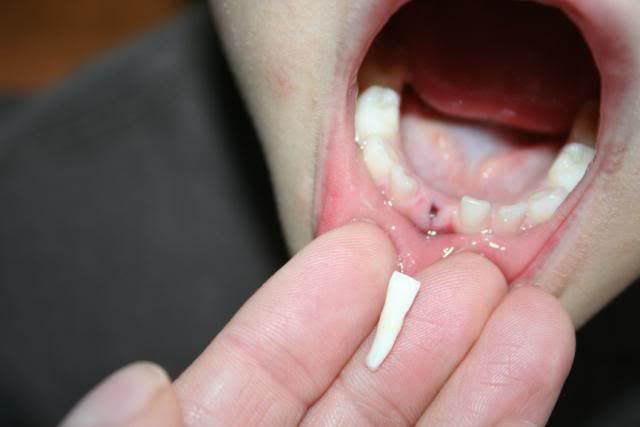 And speaking of Josh, we had an unexpected tooth extraction done. For years, he has sucked his thumb, while holding his blanket. About a year ago, he cut one of the side of his blanket with a scissors. When asked why, “Just because I wanted to.” So then the blanket started to fray in that spot. And he started wrapping the strings around one of his teeth while he sucked his thumb and scratched his blanket with his other fingers. Quite the comfort routine. So I was in the kitchen, and Ben and Josh come downstairs with huge eyes. No crying. No screaming. Just large terrified eyes. Then Josh says that Ben pulled his tooth out and hands me his tooth. Not a little tooth that snapped off and maybe was ready to come out. Nope, this tooth is the whole thing, complete with root where it broke off at the jaw bone. And Josh’s gum had split right down the front where the tooth was pulled out. Ben said that Josh told him to pull on his blanket that was wrapped around the tooth. Josh said he was just “kidding” when he told Ben to pull the blanket. Either way, Ben had pulled the blanket and the tooth was now out. So I called Eric. He said to bring him in and he would look at Josh. Josh never cried once. I think he was terrified that his tooth had actually come out. Both Eric and I have told him hundreds of time not to wrap the blanket strings around his tooth. We have tried positive and negative measures to get him to stop. I have taken away the treasured blanket, but nothing has really worked. We have told him his tooth will come out if he keeps doing this. And that day it did. And then having to go see Daddy at work because you did something that you knew you were not suppose to do add to the misery of it all. Eric was impressed at how the tooth came out. (He didn’t say this to Josh) So were all of his staff. They had never seen a complete baby tooth like that one. But Eric said there was not much to be done. Maybe a spacer later down the road, to keep the teeth coming in from taking over that spot. But, lucky for my (I think) they had a few cancellations for hygiene, so we left with 6 children who all had clean teeth. And we got to go out for lunch with Eric.