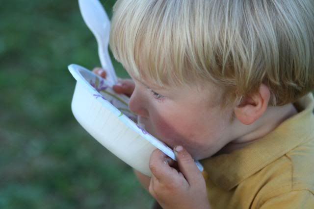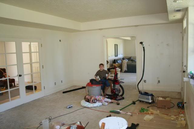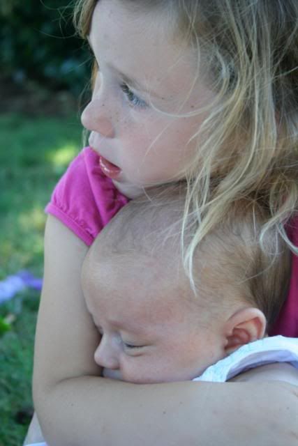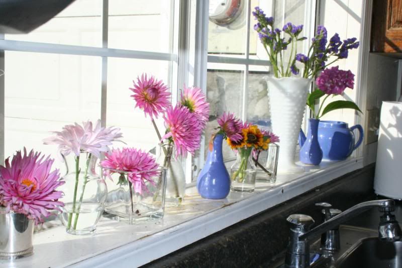 I headed home as soon as the luncheon was over. I came home to a very clean house. I changed into my painting clothes, sent the children outside to play in the pools (little kiddie ones from kmart) and picked up where I had left off painting. It wasn’t long and my friend from church (the one I had just shared my horrible, no good, very bad morning, with showed up in her painting clothes too. In no time we had finished what needed to be done, and she left to go make dinner for her husband. And I got dinner ready for my family. Eric came home with some beautiful sunflowers, knowing that it had been a rough day. Oh, how I love him. Sunflowers…so big and bright and beautiful. So just perfect for today.