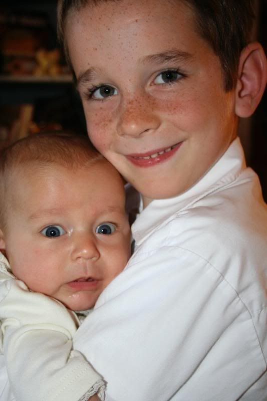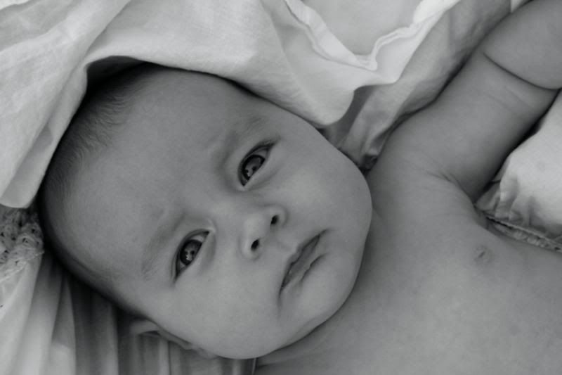 I think Julia might have dark hair. I have teased Eric for years that I just want one little girl with my hair color. All the children have been dark haired when they were born, and then it all fell out and came back Eric’s color. But Julia seems to be growing more dark hair, not losing it. So we will see. I’m still hoping for dark brown!