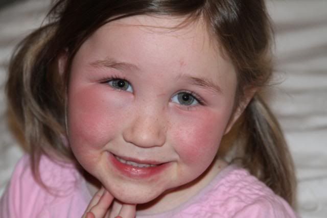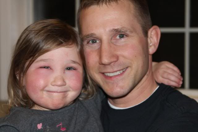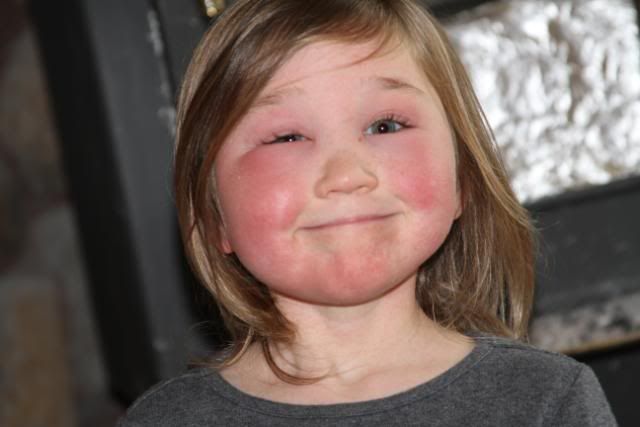 Which I immediately called our Dr to see if we could bring her in. Her right eye was completely swollen shut and she could barely open her left. She was crying because it itched and hurt. The office had just had a cancellation and so I took her right in. Her Dr assured us that with a script of steroids, she would be feeling better by that evening. And he was right. We are now on day two of the meds and she is almost back to normal.