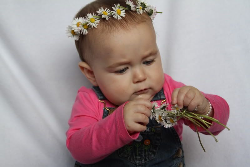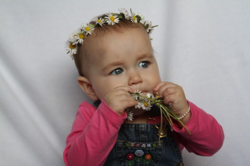 And here are a few from after we got back home. Laura made her a Daisy chain and Maryann wanted to take pictures of here.