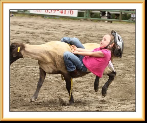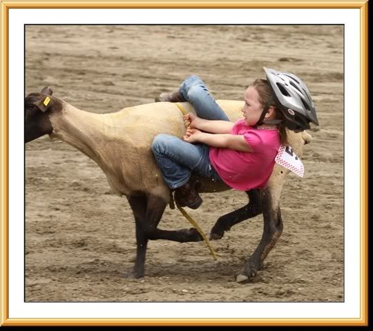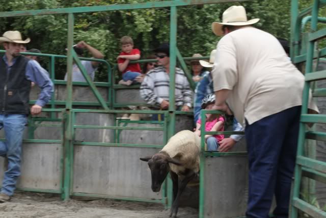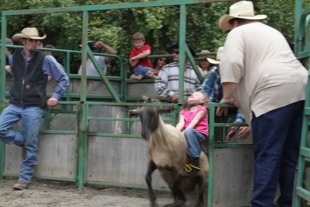 Last weekend was the rodeo down south a ways. This was our first rodeo. Eric stayed home to study for a test he had, It felt like Dental school days all over again. We had missed the sign up for the kids to try thier hand at mutton bistin or calf riding, so we just checked about an hour before the rodeo started and they had one child not show for the mutton bustin and Maryann was convinced she could do it, so we signed her up at the last minuet.